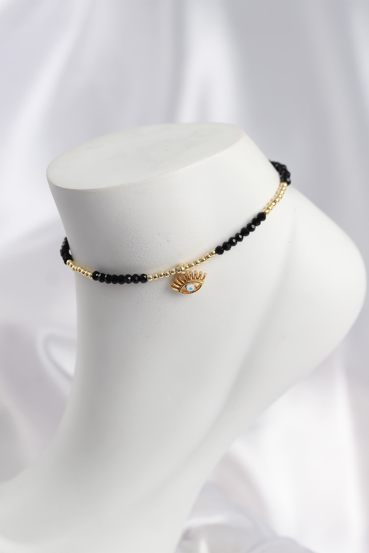 Siyah Renk Boncuklu Nazarlı Göz Figürlü Halhal - 268422
