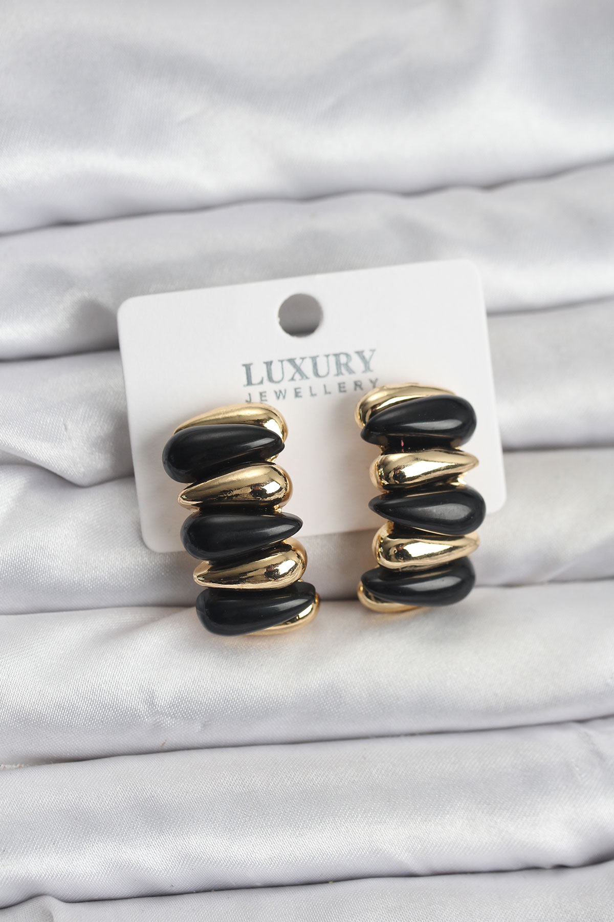 Siyah Renk Pirinç Vintage Kadın Küpe - 266755