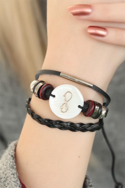 Siyah Renk Sonsuzluk ve Atatürk İmza Tasarım Çoklu Deri Bayan Bileklik - 233904