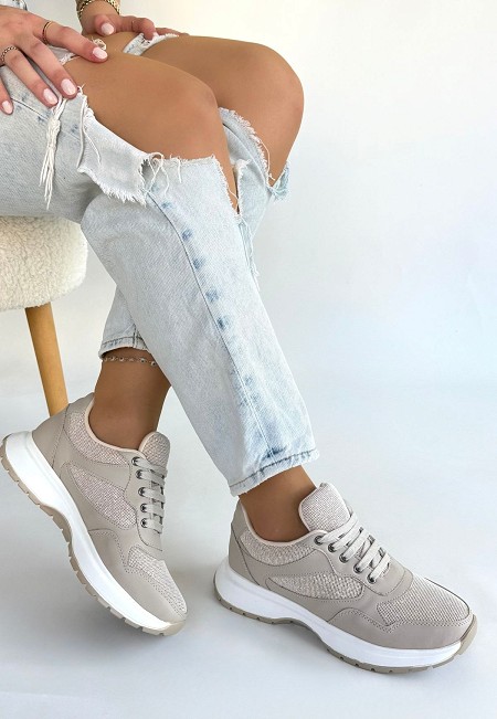 Slar Bej Cilt Bağcıklı Spor Ayakkabı - 265611