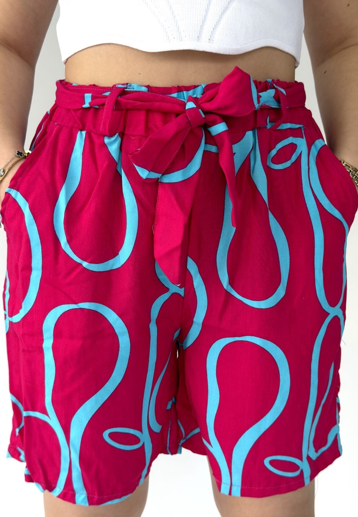 Şony Fuşya Lastikli Bağlamalı Şort - 268005