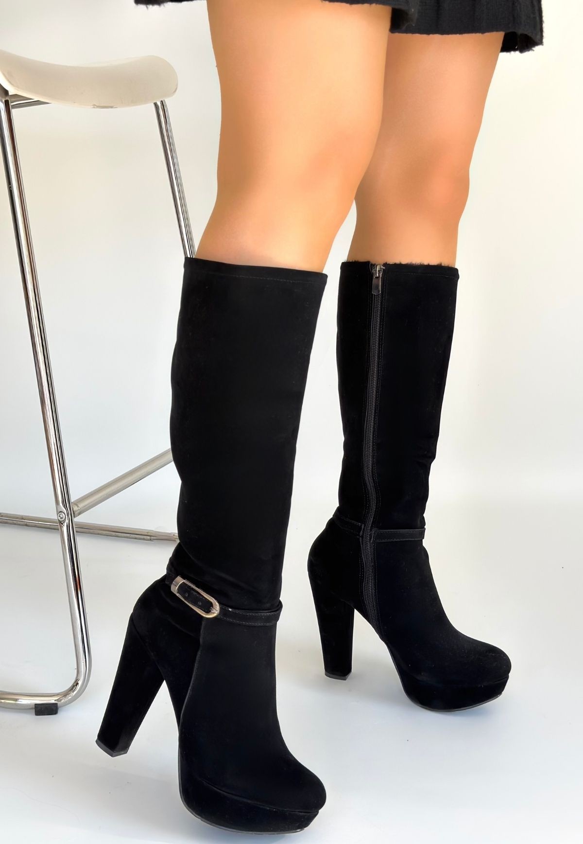 Tekja Siyah Süet Topuklu Çizme - 267027