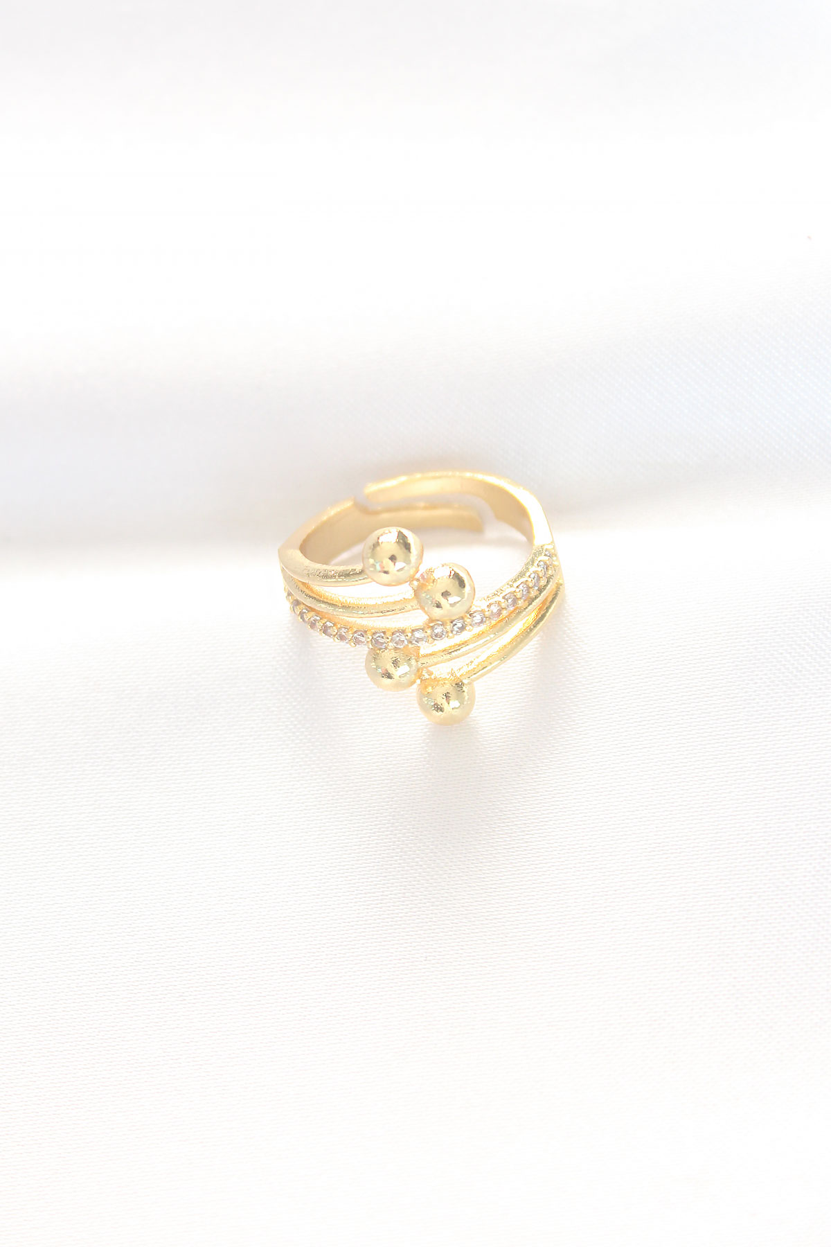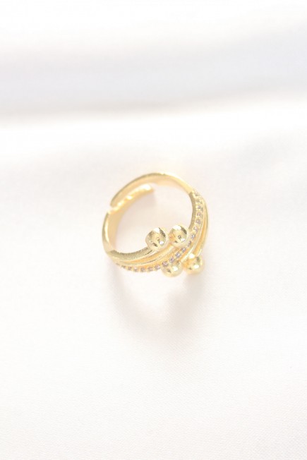 Topçuk Model Zirkon Taşlı Gold Renk Ayarlanabilir Yüzük - 254879