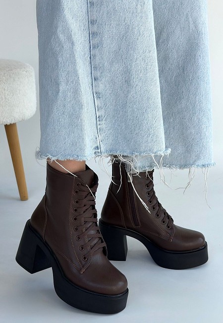 Tsan Kahverengi Cilt Bağcıklı Topuklu Bot - 265938