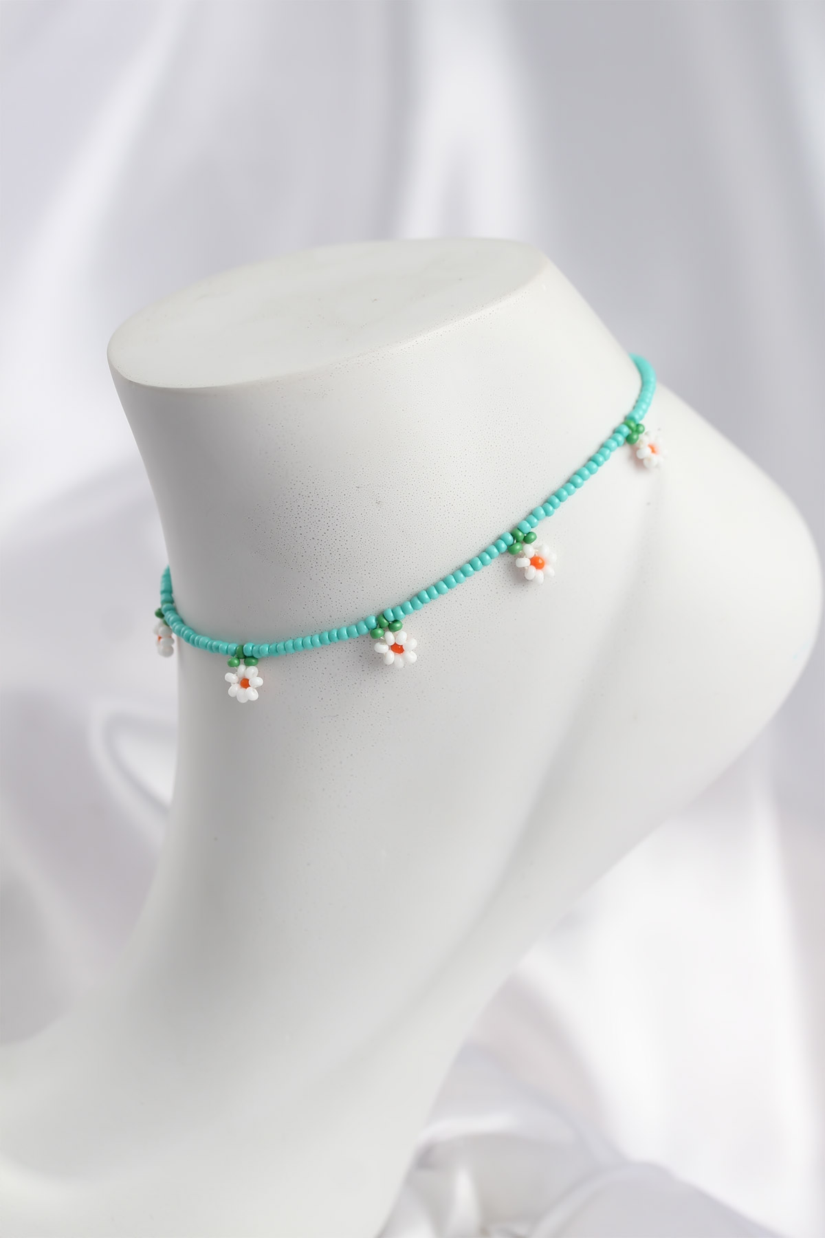 Turkuaz Renk Boncuklu Papatya Motifli Halhal - 268411