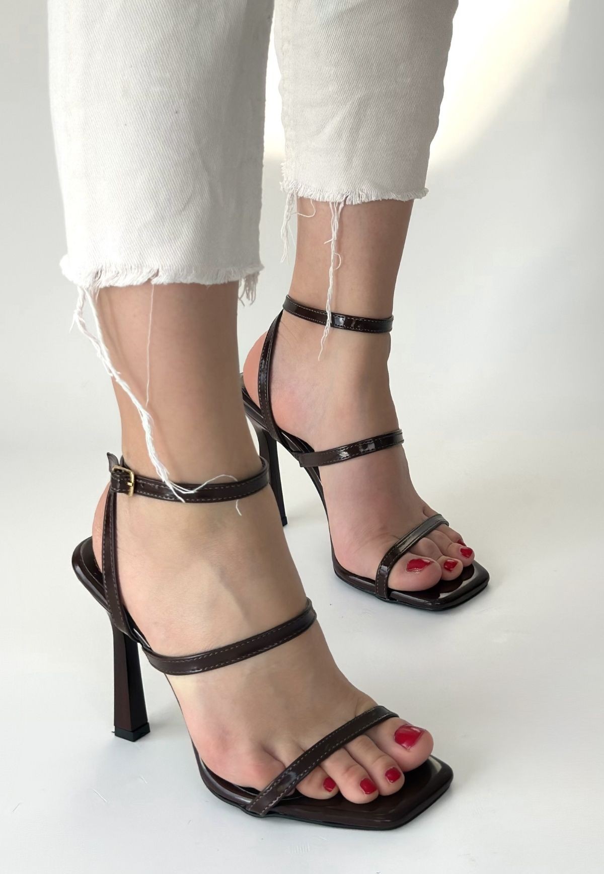 Umira Kahverengi Rugan Topuklu Bilekten Kemerli Ayakkabı - 268070