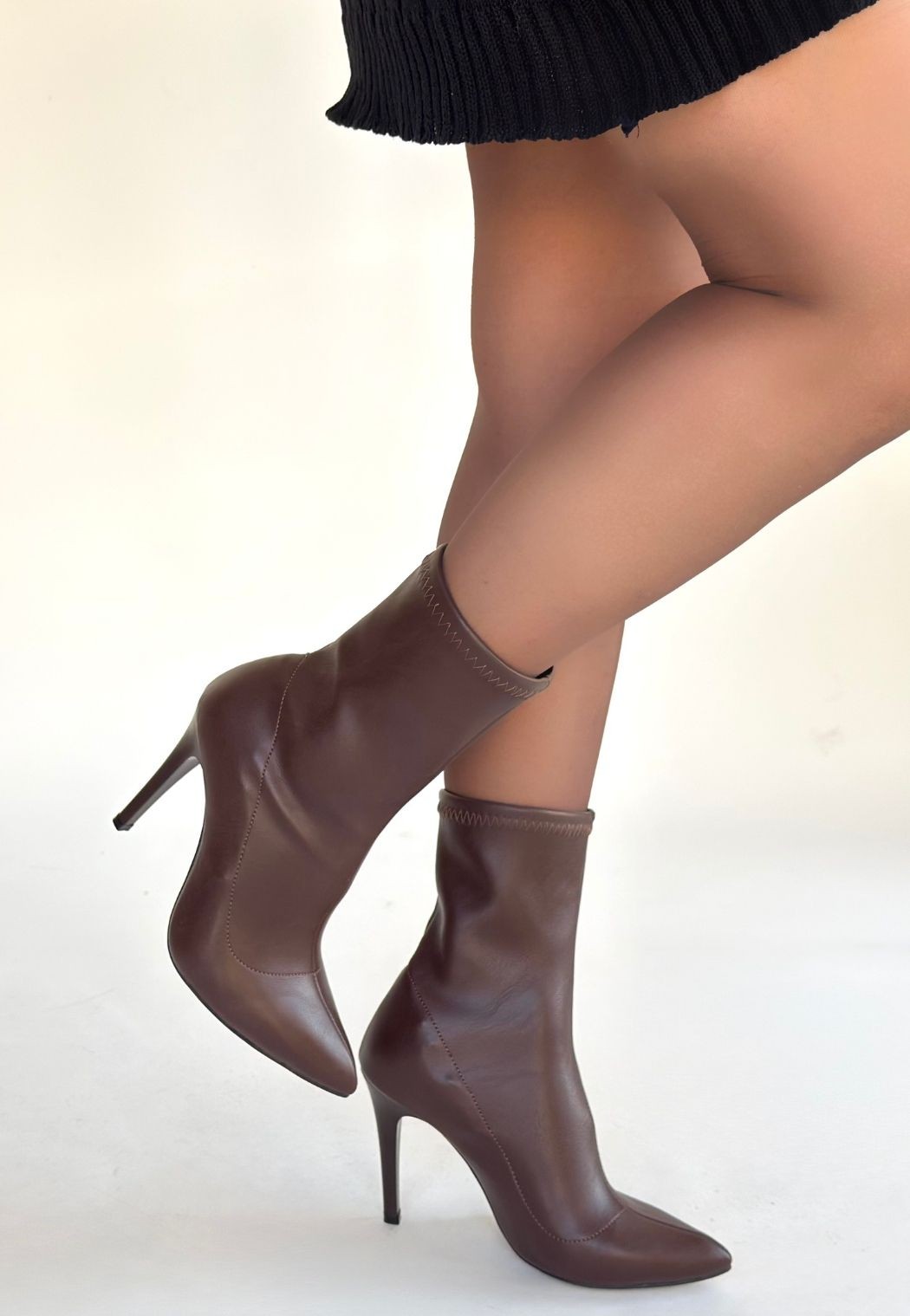 Verena Acı Kahve Cilt Topuklu Streç Bot - 266651