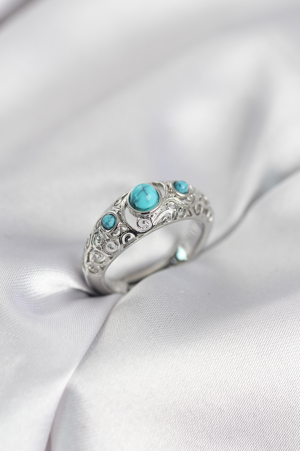 Vintage Model Mavi Taşlı Gümüş Renk Kadın Yüzük - 267690