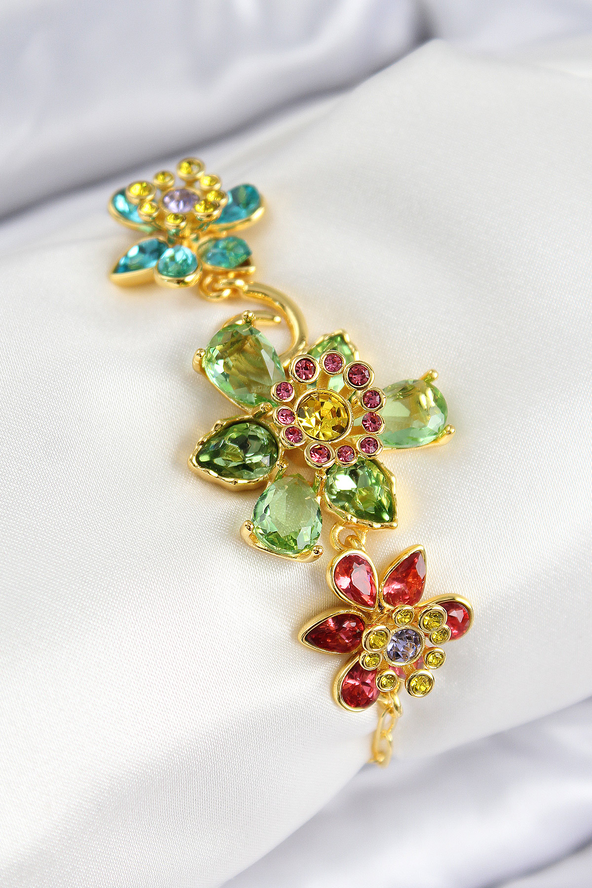 VIP Pirinç Zirkon Taşlı Çiçek Model Gold Renk Kadın Bileklik - 265152
