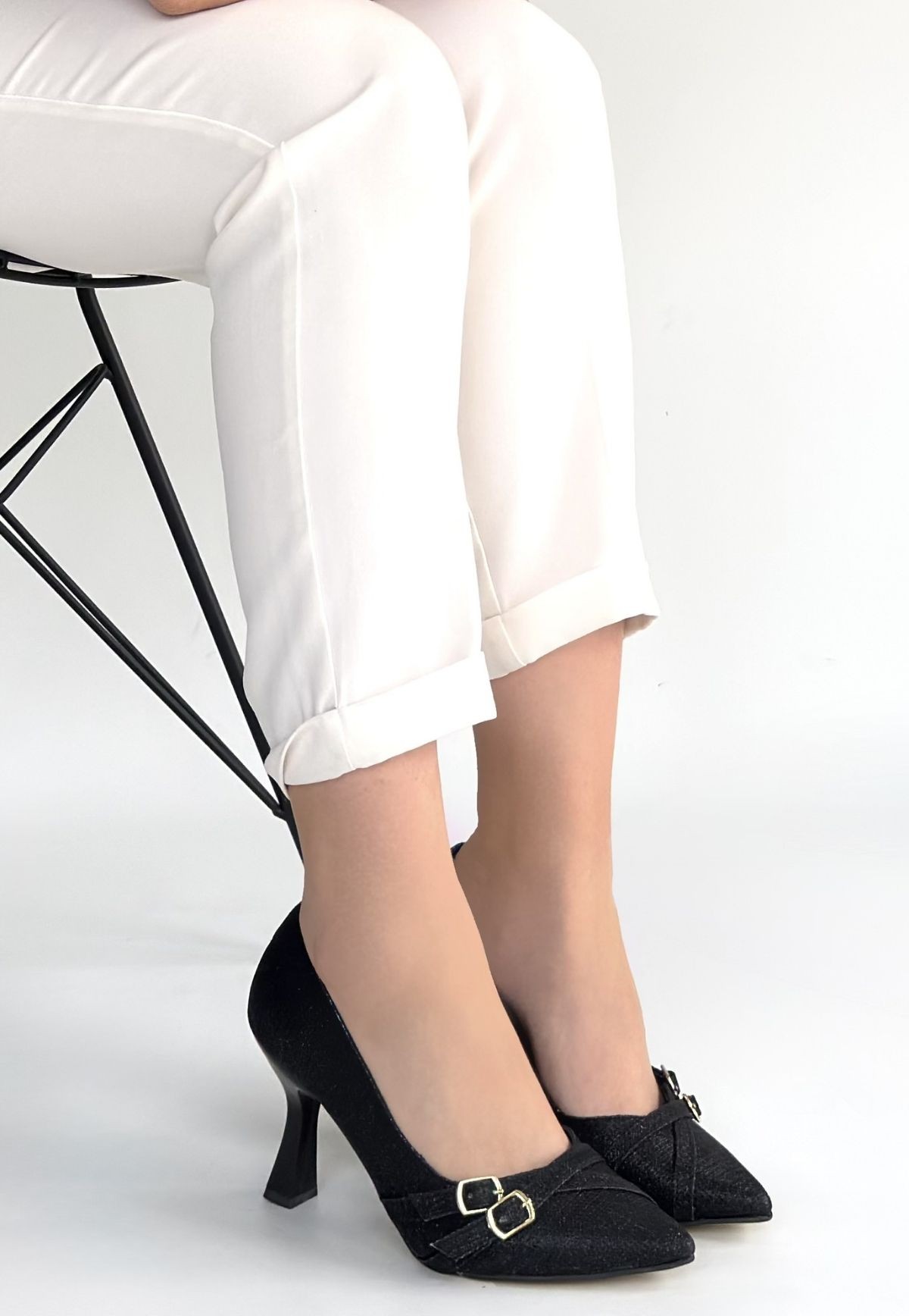 Wenda Siyah Simli Cilt Topuklu Ayakkabı - 267805