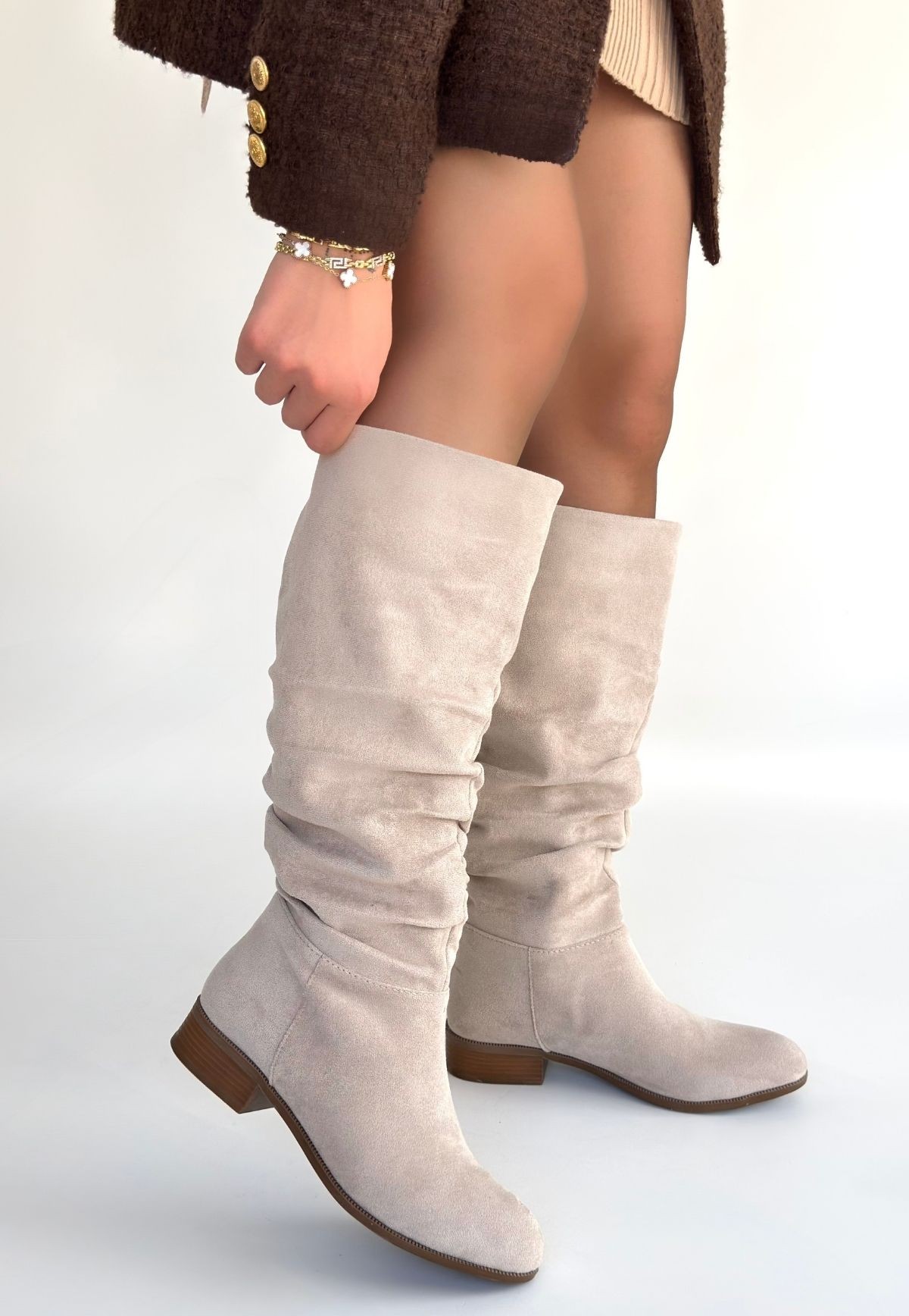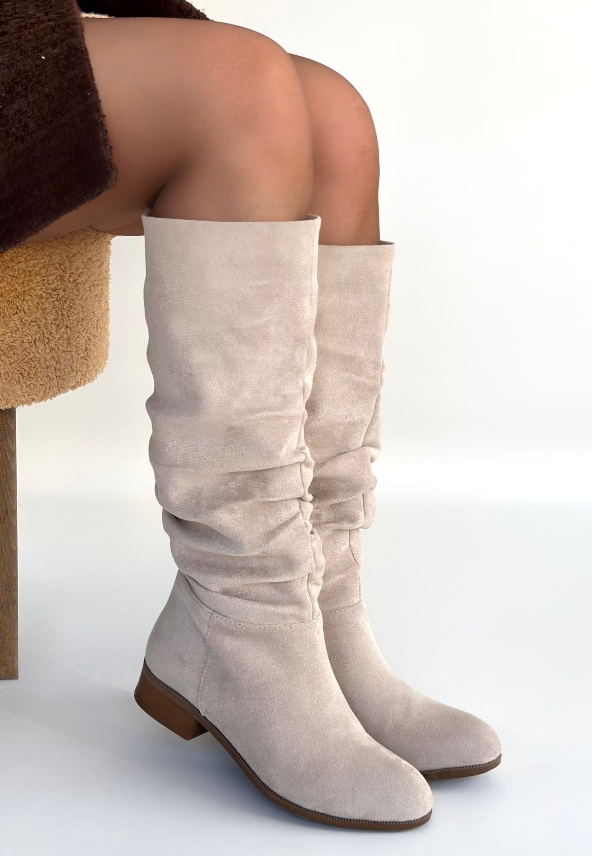 Winda Bej Süet Körüklü Topuklu Çizme - 267200