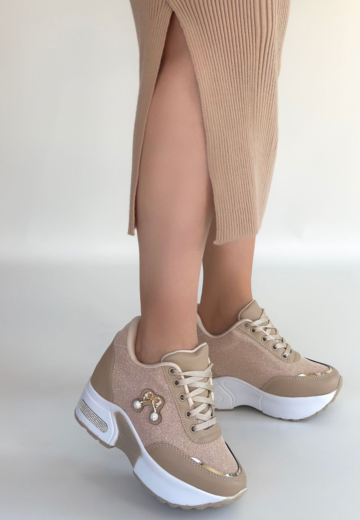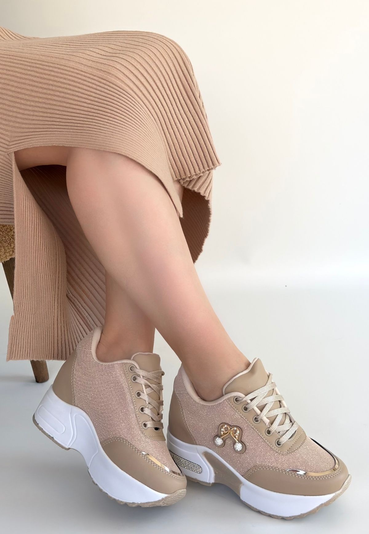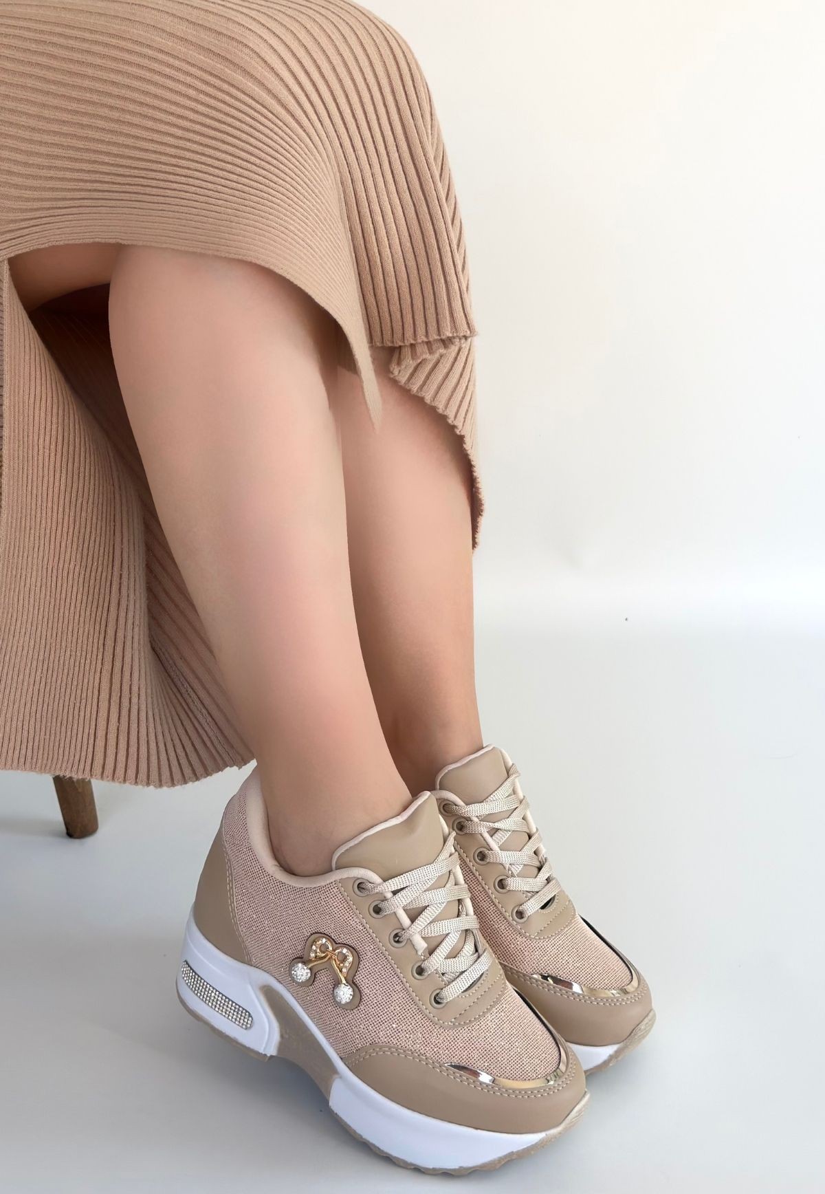 Wody Bej Cilt Simli Bağcıklı Spor Ayakkabı - 267003