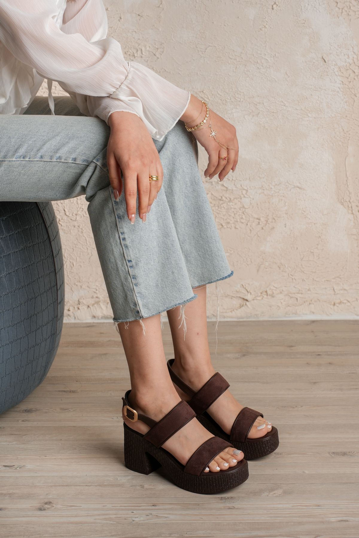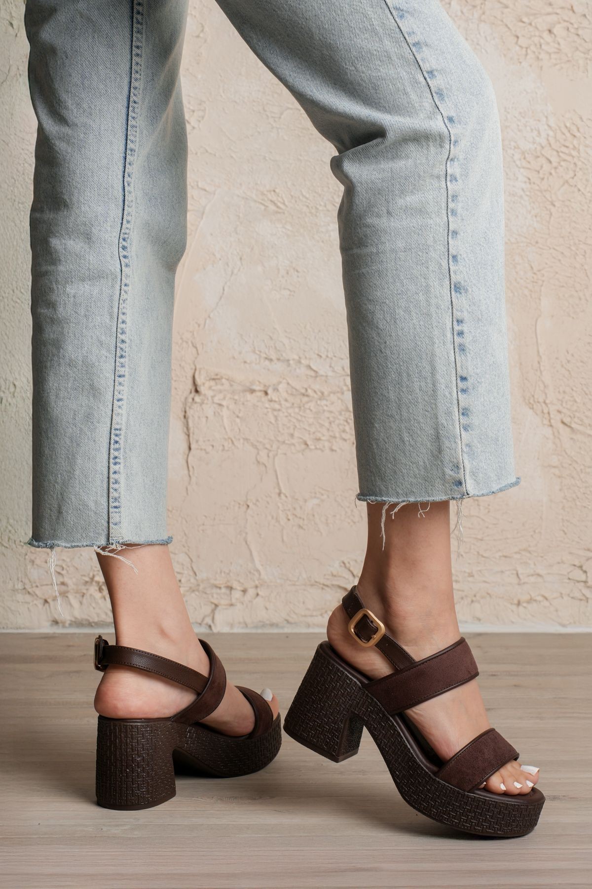 Wowi Kahverengi Süet Topuklu Sandalet - 268443