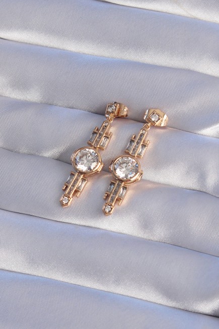 XUPİNG Rose Renk Zirkon Taşlı Geometrik Sallantılı Küpe - 256730