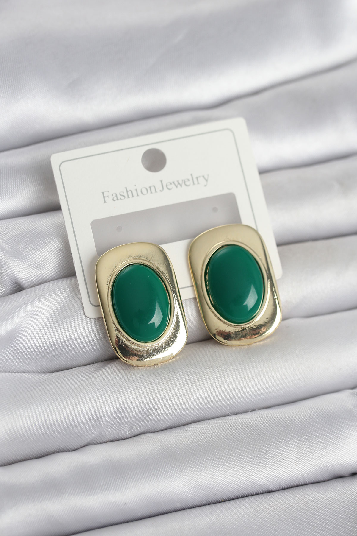 Yeşil Renk Kare Model Vintage Kadın Küpe - 267766