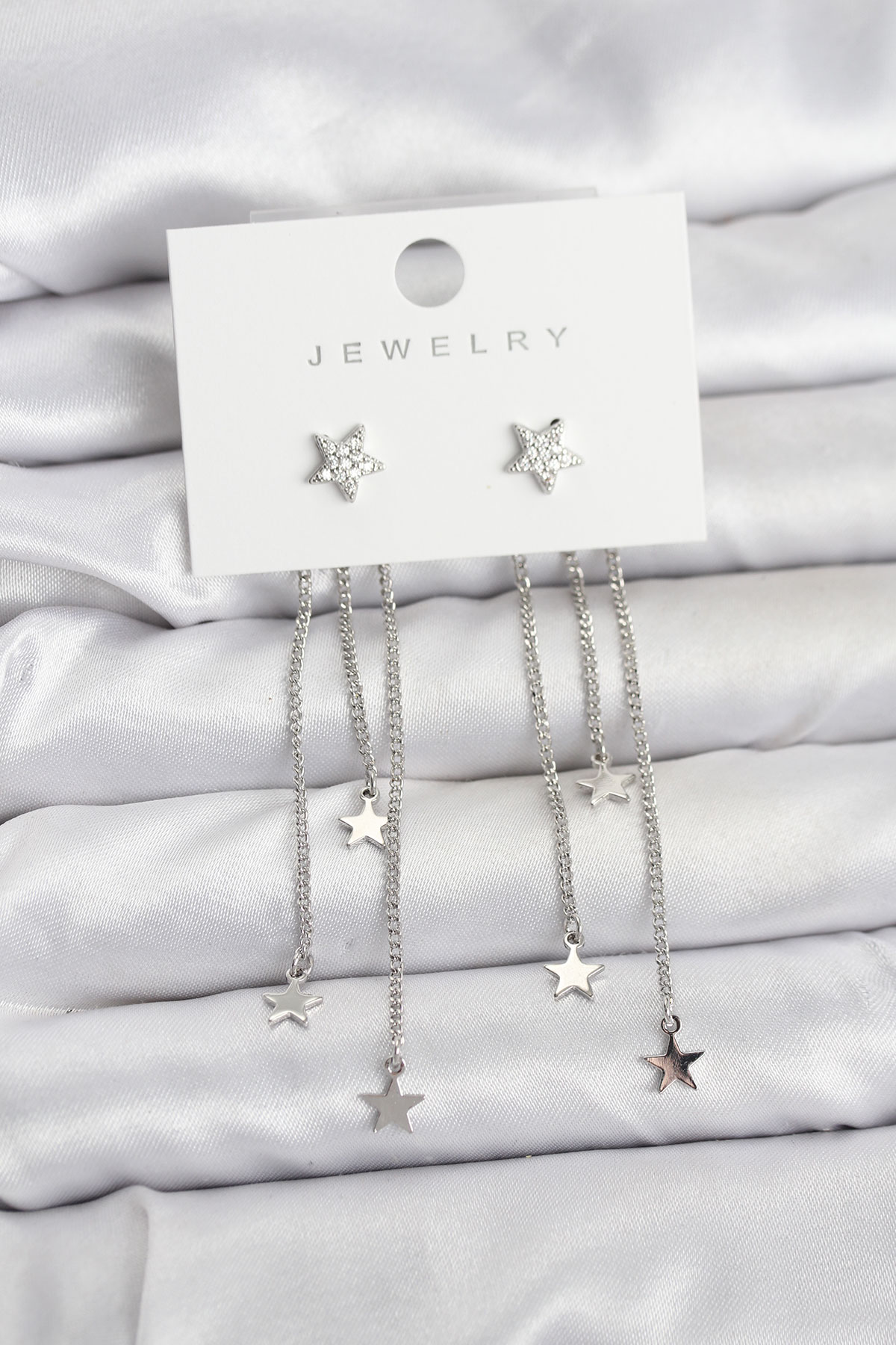 Yıldız Model Gümüş Renk Pirinç Sallantılı Kadın Küpe - 266602