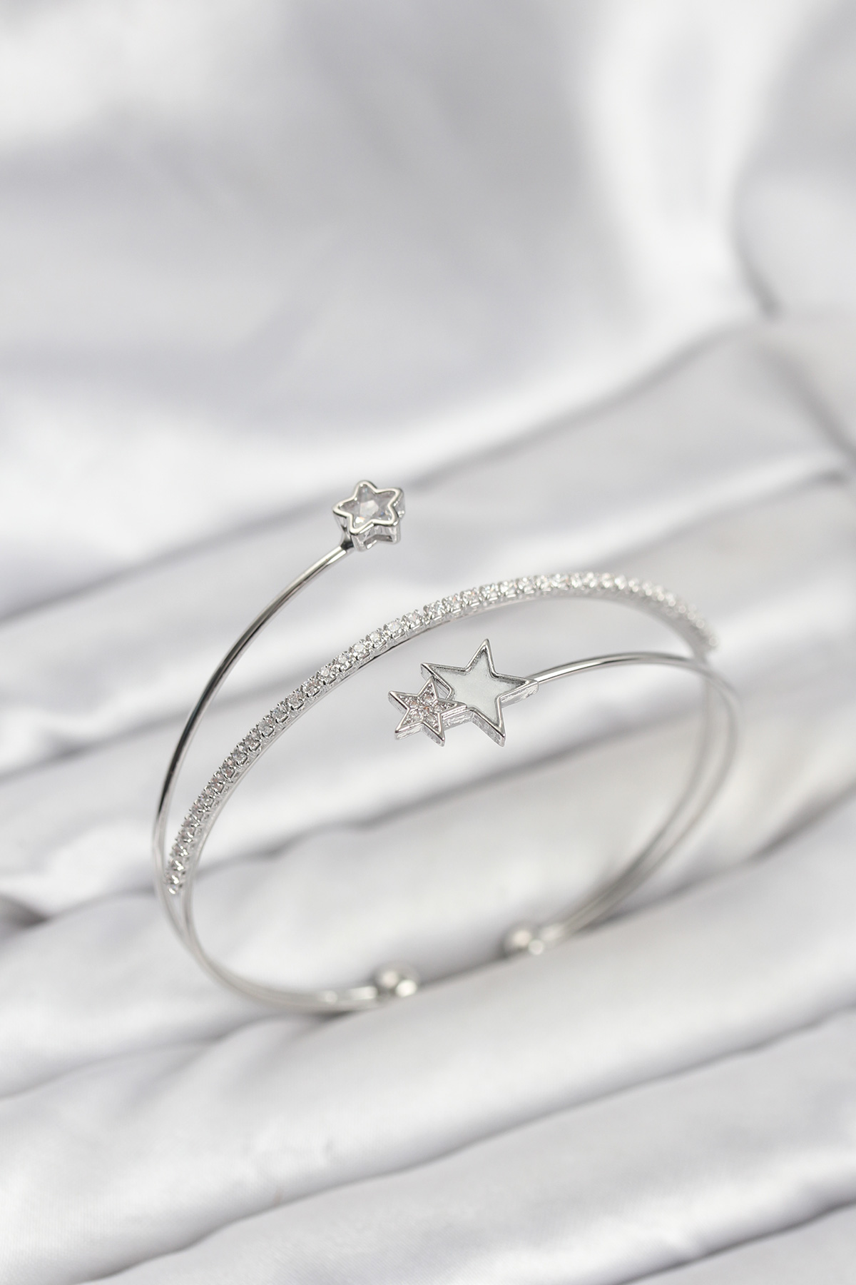 Yıldızlı Model Pirinç Gümüş Renk Kadın Bileklik - 267070