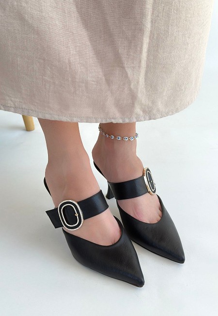 Yote Siyah Cilt Topuklu Terlik - 265351