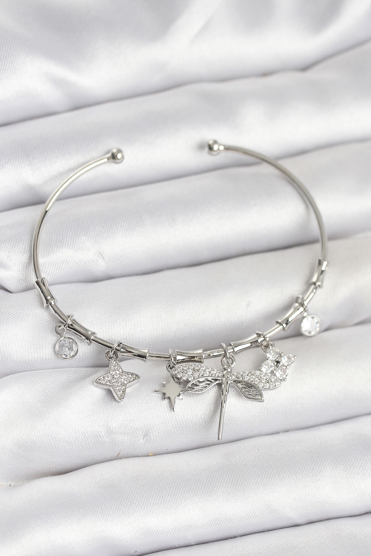 Yusufçuk Charmlı Gümüş Renk Pirinç Kadın Bileklik - 266060