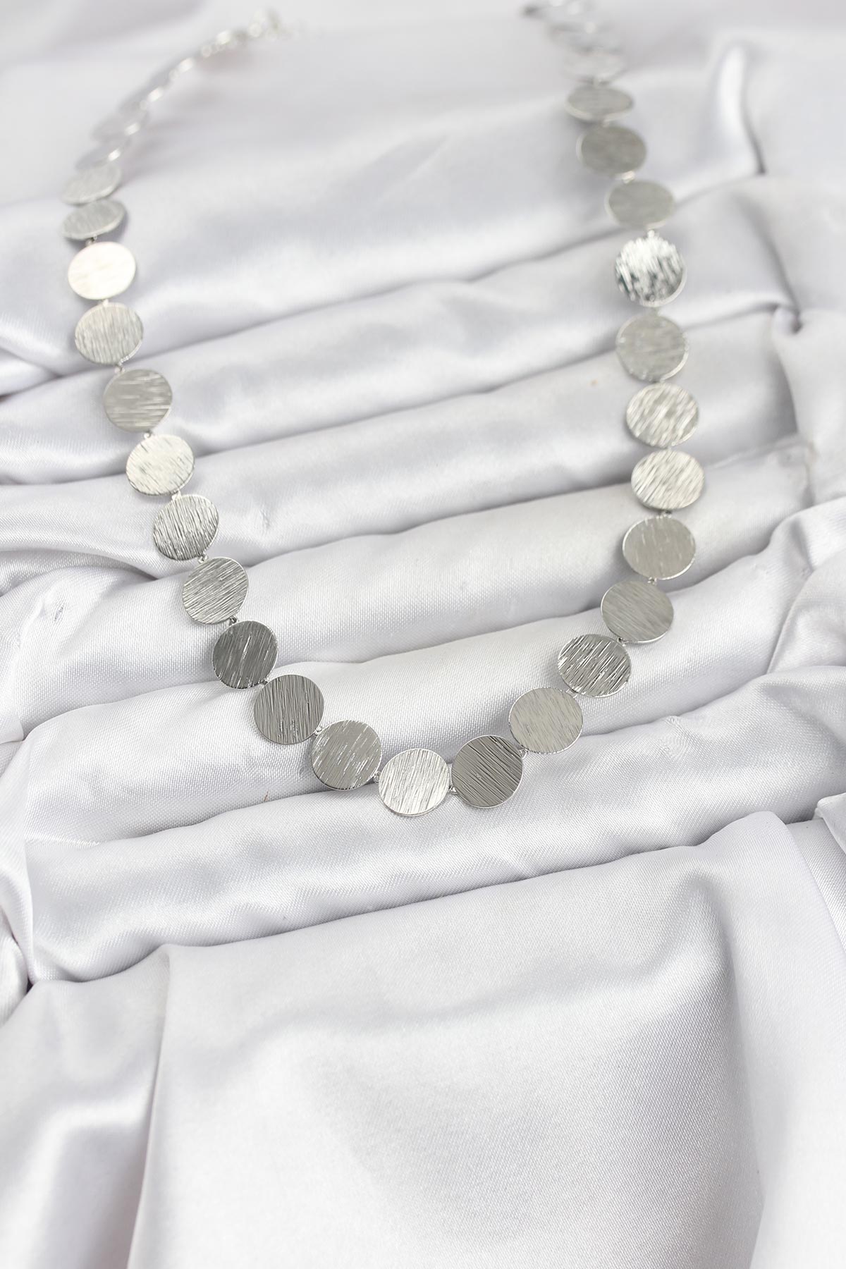Yuvarlak Plaka Model Gümüş Renk Kadın Kolye - 267084