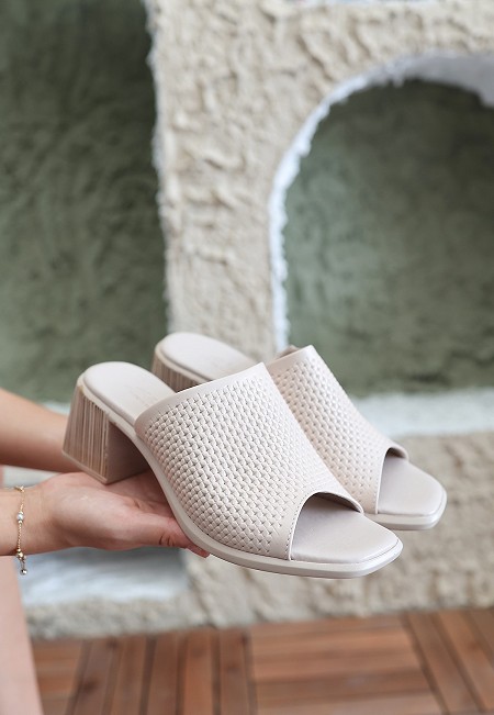 Zanna Bej Cilt Topuklu Terlik - 256517