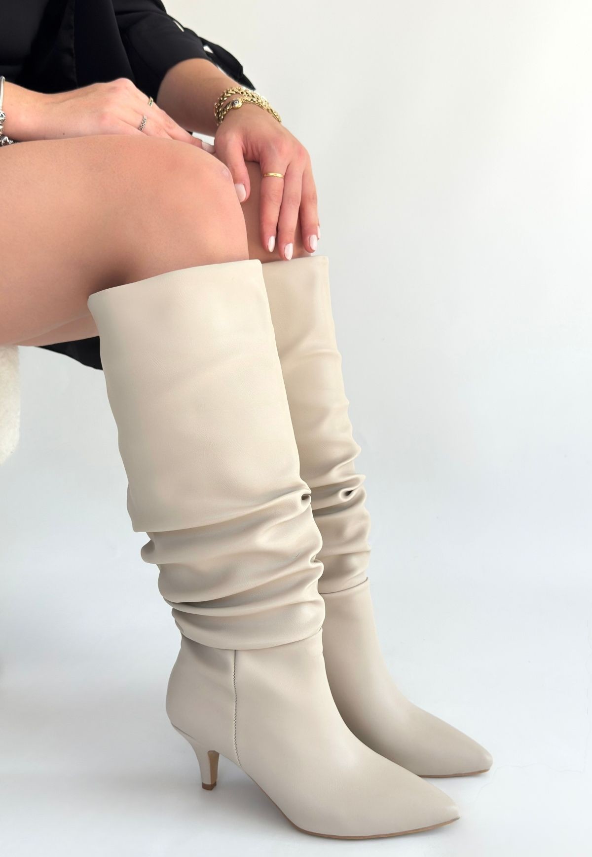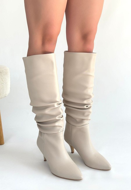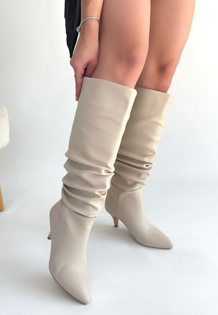 Zelya Bej Cilt Topuklu Çizme - 265628