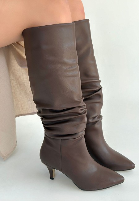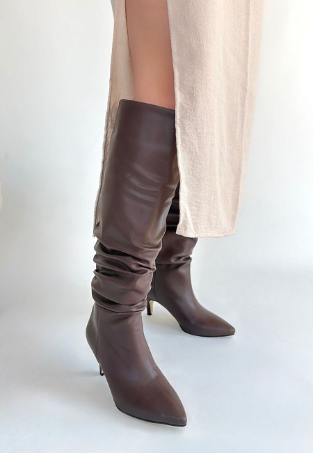 Zelya Kahverengi Cilt Topuklu Çizme - 265631