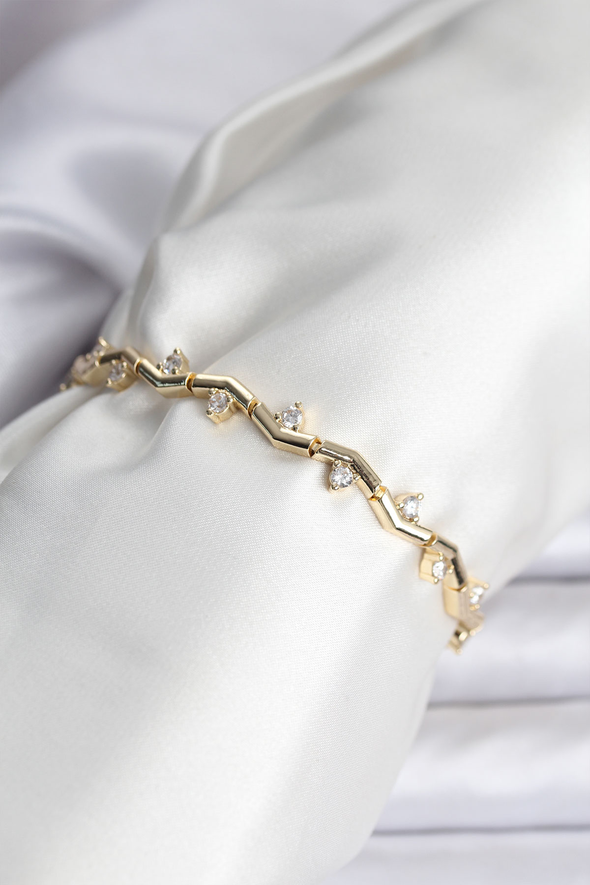 Zikzak Model Pirinç Gold Renk Bileklik - 266223