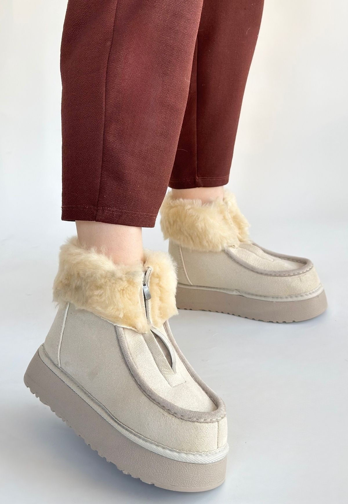 Detay: İçi Kürklü Bot Önden Fermuarlı