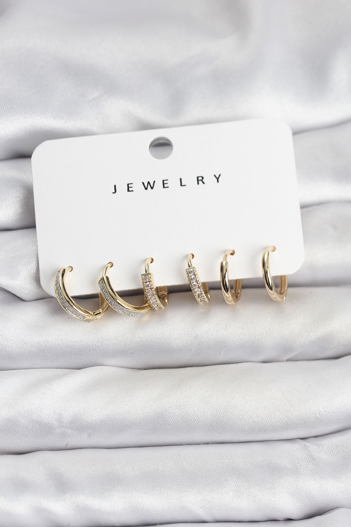Zirkon Taşlı Gold Renk Pirinç Kadın Küpe Seti - 266743