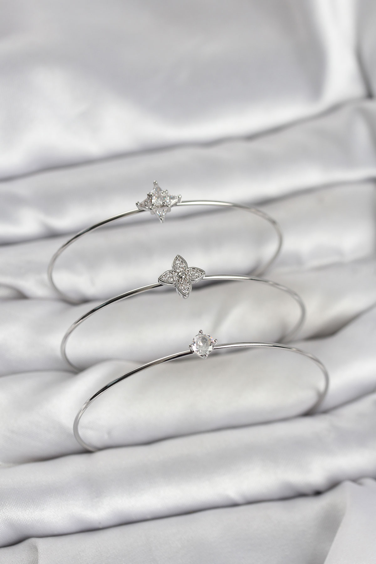 Zirkon Taşlı Gümüş Renk Yonca Model 3'lü Kadın Bileklik Kombini - 267736