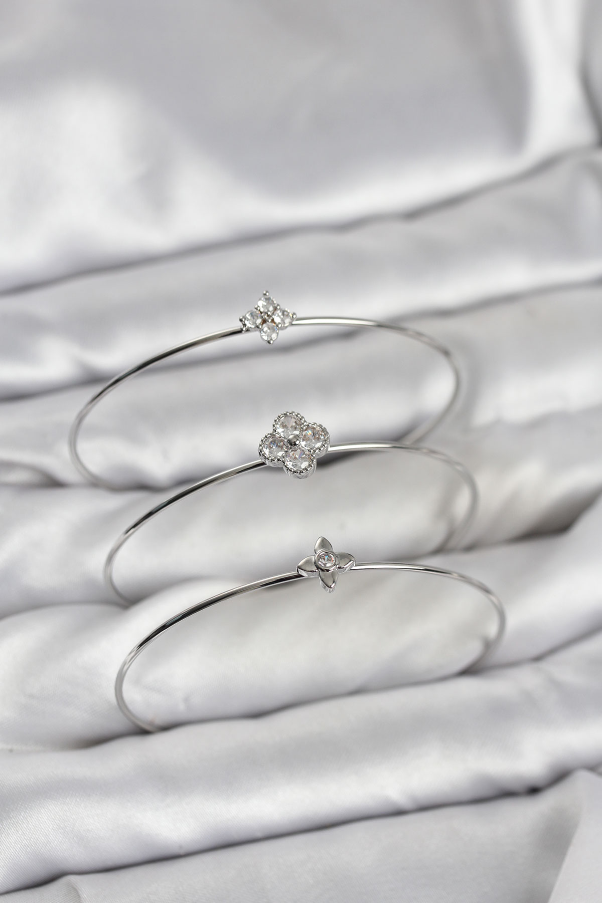 Zirkon Taşlı Gümüş Renk Yonca Tasarım 3'lü Kadın Bileklik Kombini - 267740