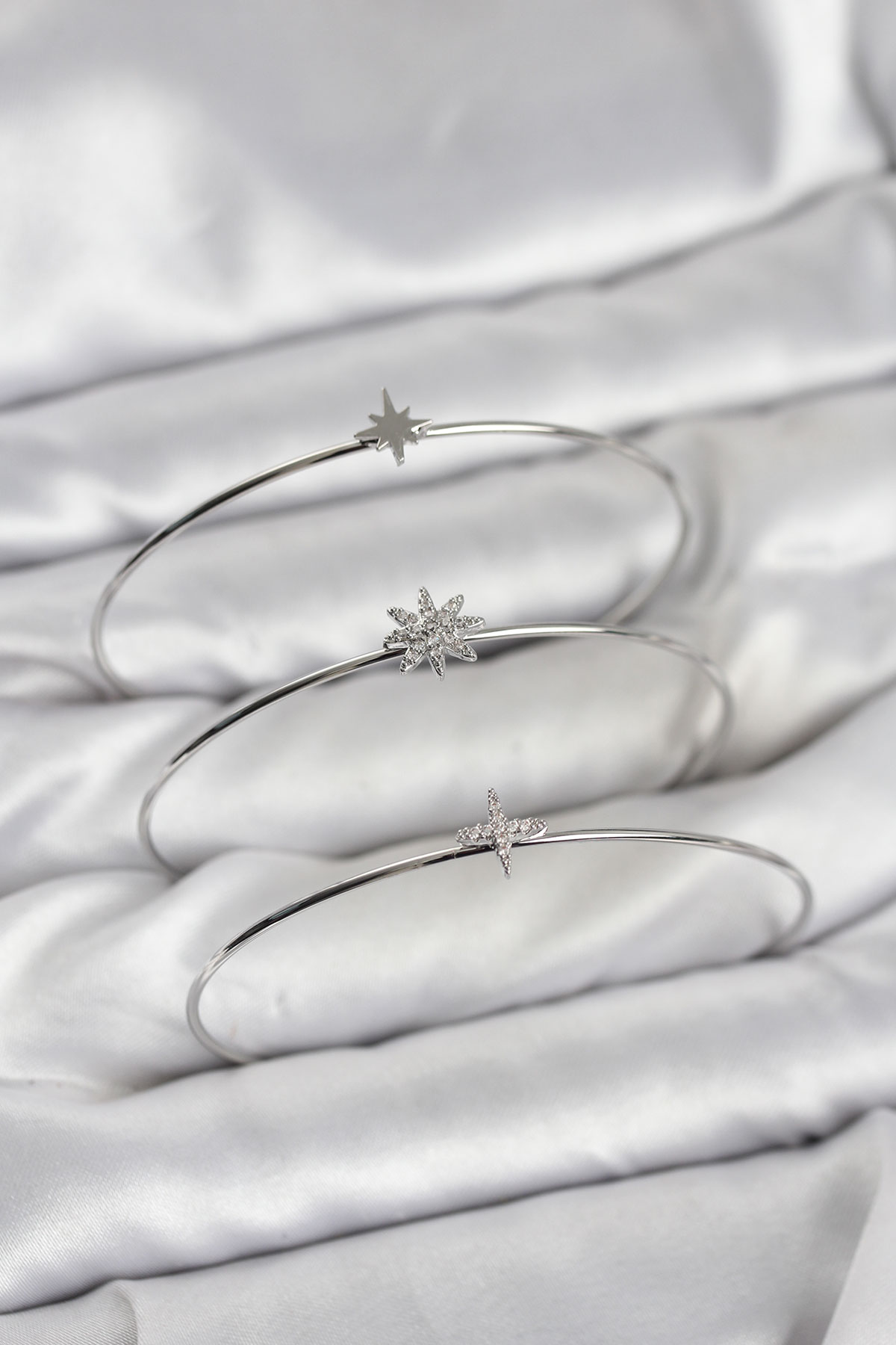 Zirkon Taşlı Kutup Yıldızı Model Gümüş Renk 3'lü Kadın Bileklik Kombini - 267746