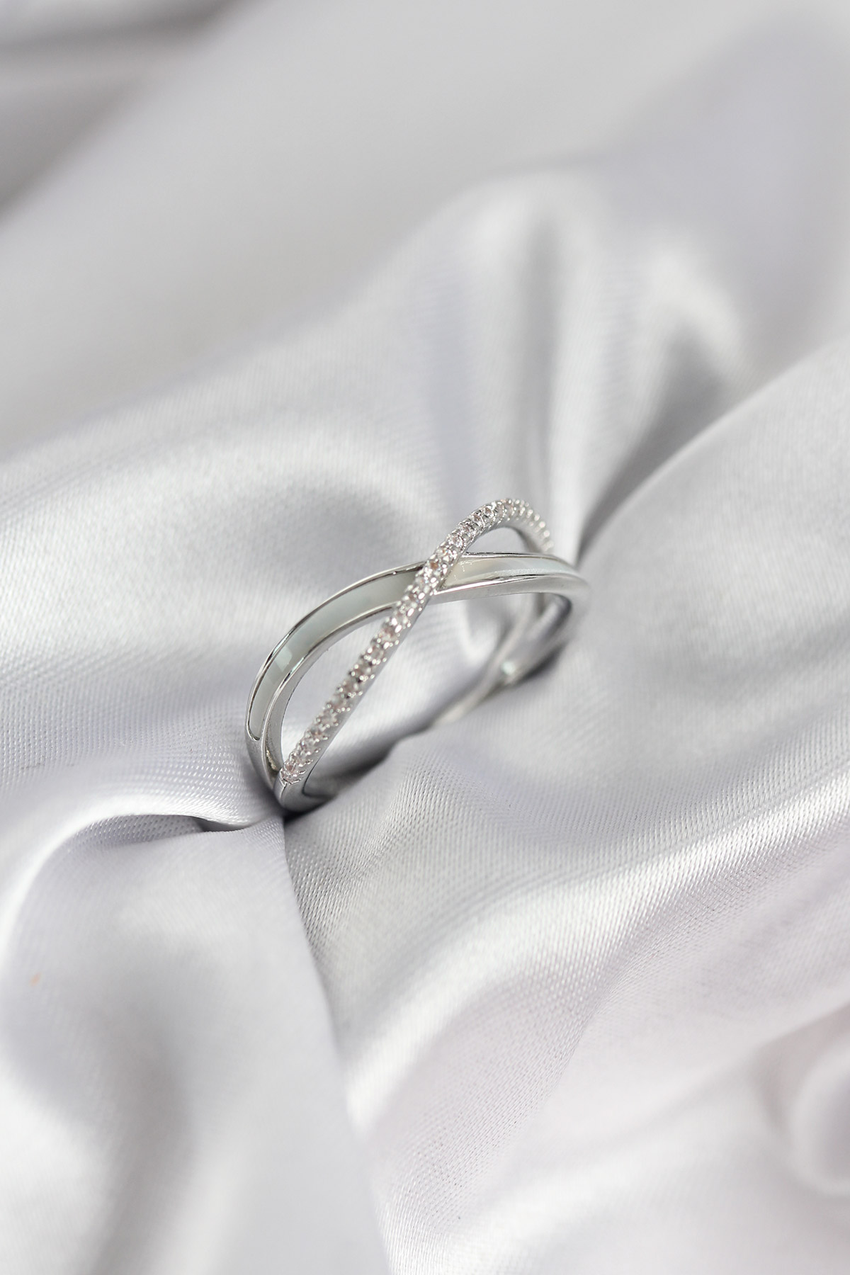 Zirkon Taşlı Sarmal Sedefli Gümüş Renk Kadın Yüzük - 267468