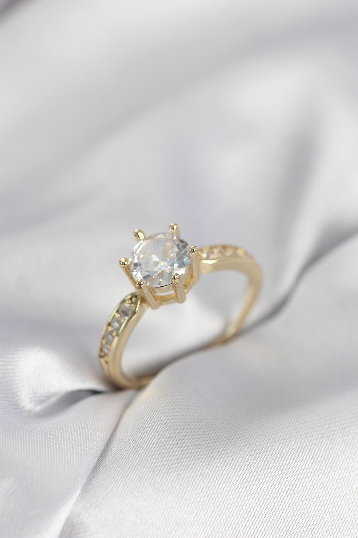 Zirkon Taşlı Tek Taş Model Gold Renk Kadın Yüzük - 267564