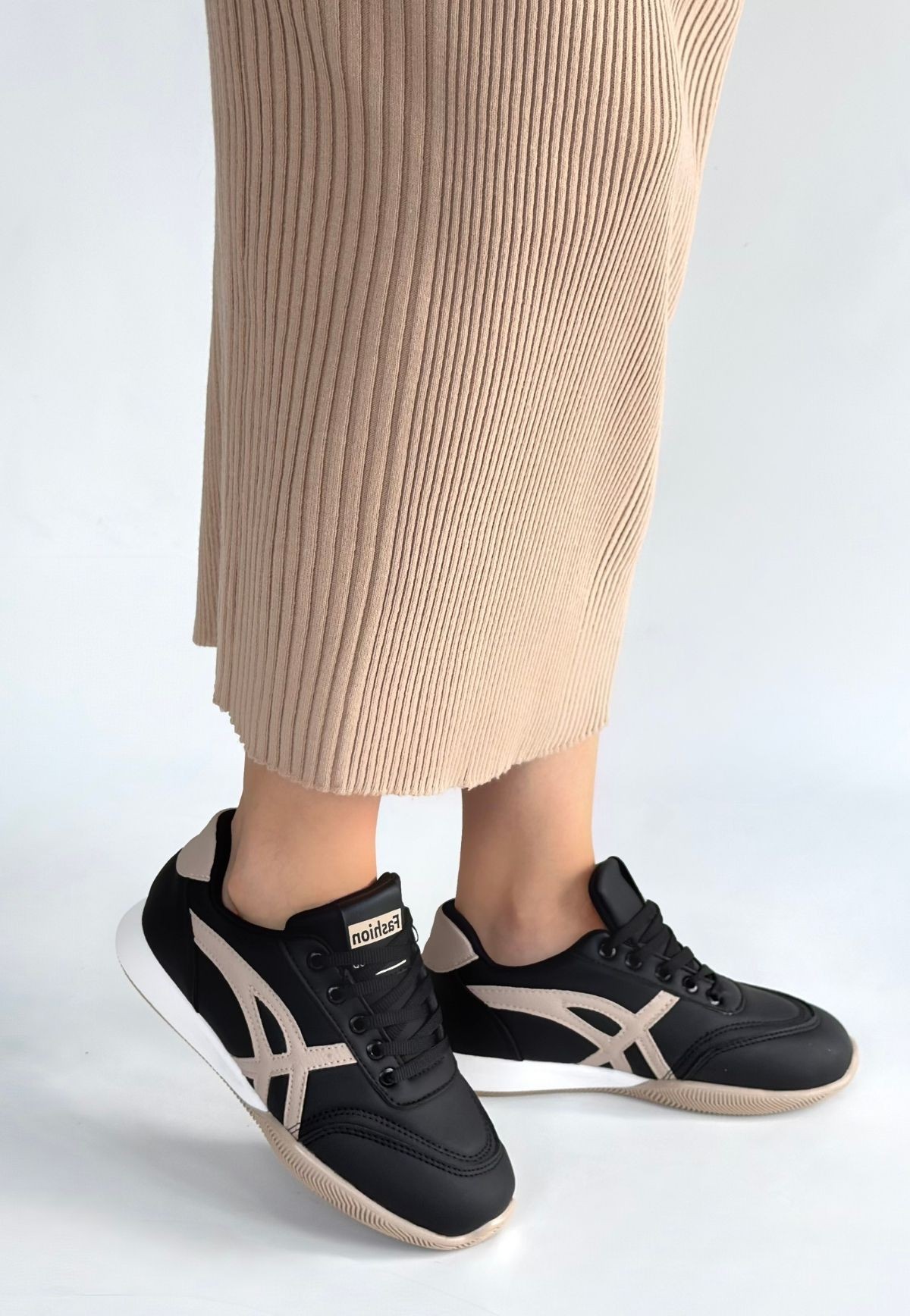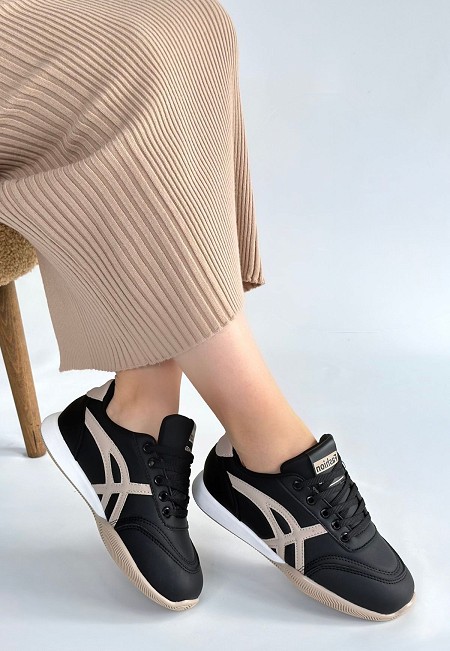 Zlay Siyah Cilt Bej Detaylı Bağcıklı Spor Ayakkabı - 265931